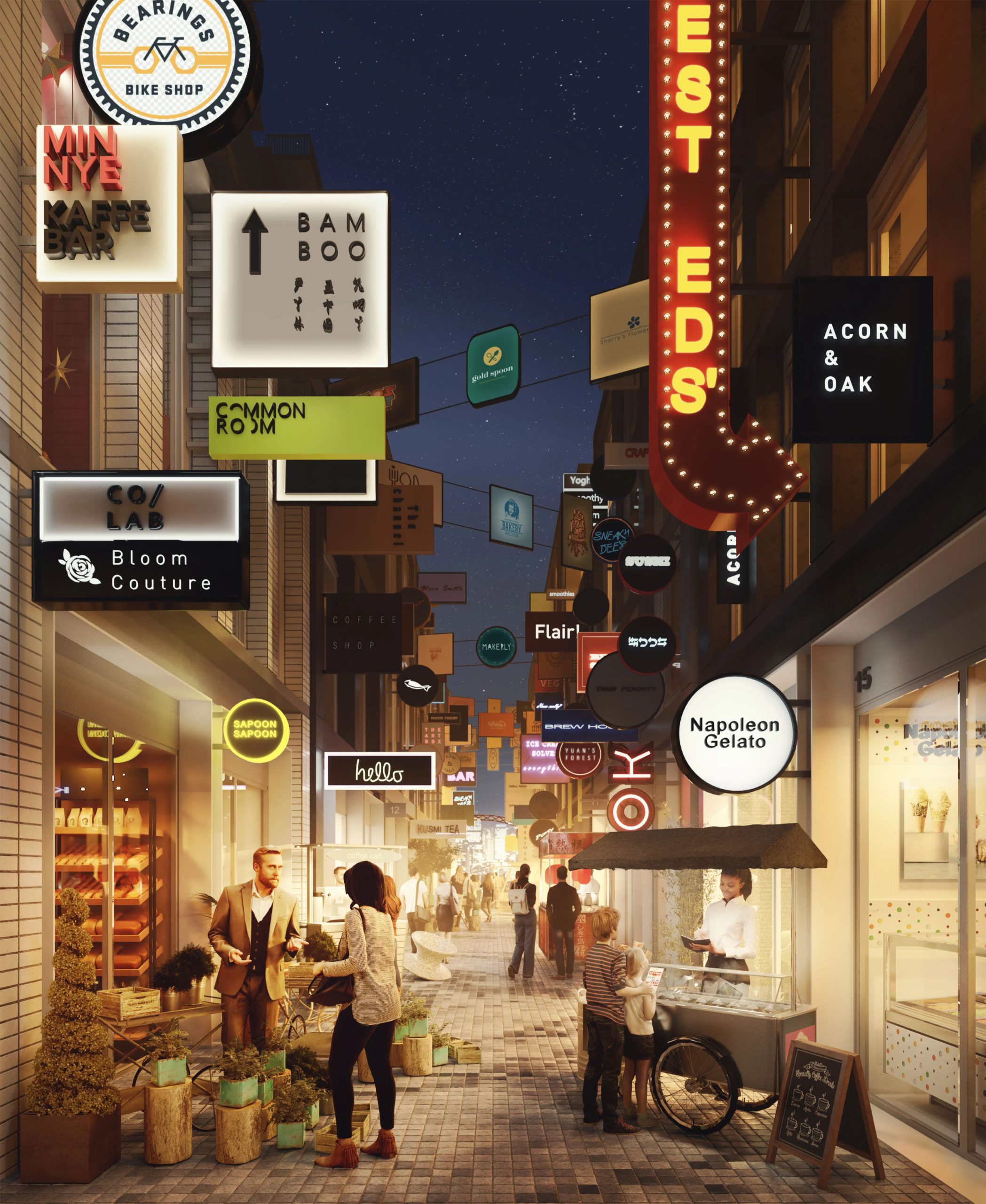 At a high-traffic Toronto crossroads, Mirvish Village offers premium commercial spaces for restaurants, retail, and other businesses. Storefronts on Bloor and Bathurst Streets, heritage buildings on Markham Street, micro-retail in Honest Ed’s Alley, and food vendors at The Kitchen are just a few of the availabilities in this vibrant, culture-driven neighbourhood.
